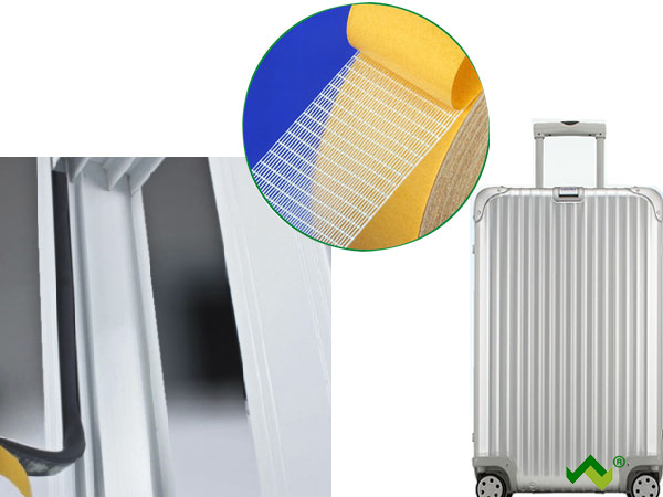 1.膠層中間有一層玻璃纖維網(wǎng)格布加強(qiáng)了膠帶縱橫向的穩(wěn)定性。