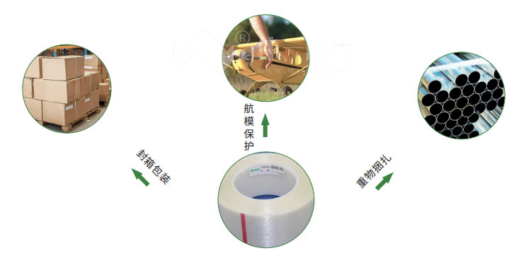 1.單面纖維膠帶可用于高強(qiáng)度捆扎,抗拉伸,易捆綁,替代塑料帶包裝捆扎機(jī);如洗衣機(jī),冰箱,冰柜等,金屬及木制家具的包裝,墊板/紙箱運(yùn)輸,紙箱包裝,零載物品的包裝。