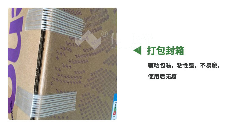 1、封箱包裝:廣泛應(yīng)用于紙箱、家具、電器及零載物品等行業(yè)的包裝,推薦使用單面纖維膠帶,條紋或者網(wǎng)格都有,可以根據(jù)實際需求選擇,如果是一些諸如大理石、重型家具等可以使用高強度單面纖維膠帶;