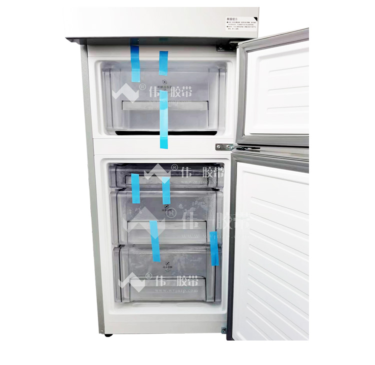 在運輸冰箱的過程中,需要使用膠帶來固定冰箱門、內隔板和置物架,防止它們在運輸時碰撞損壞,可以使用纖維膠帶和MOPP膠帶。這兩種類型的膠帶,都擁有良好的粘接性能,且性價比高,非常適合用于冰箱在運輸途中的固定。