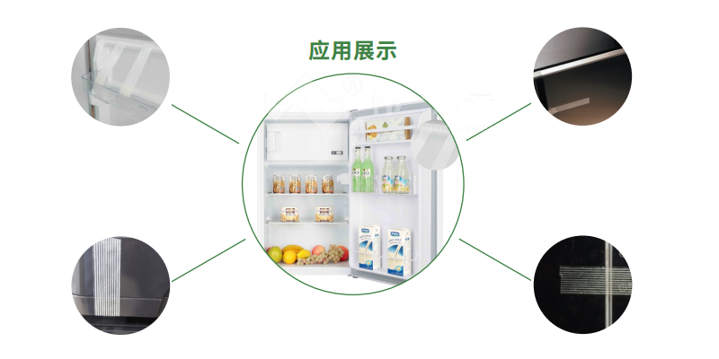 這是由于家電冰箱的很多部件的材質是PP材質,一般的情況下粘附性差而且比較脆。為了滿足各類家電外觀設計和功能性的要求,膠帶和膠粘劑是必不可少的重要材料。合理應用膠帶或膠粘劑不僅可以滿足產品的設計需求,還能有效幫助企業(yè)提高效率,降低成本。
